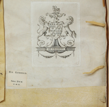 Presumably in the latter half of the twentieth century this copy was acquired by the noted naval officer and historian Ira Dye, who studied chemical engineering at the University of Washington and was commissioned into the US Navy following his graduation in 1940. Dye served as a submariner in the Pacific theatre during World War II and commanded the submarine Seafox in the Korean War, before taking up the position of Commander, Submarine Division 52 and serving on the Joint Staff of the Joint Chiefs of Staff at the Pentagon. He subsequently moved to the Maritime Administration and then the Department of Transportation, before departing administrative work for academia, joining the University of Virginia in 1978 as a Visiting Professor of Civil Engineering, becoming Research Professor of Civil Engineering and Director of the Research Laboratories for the Engineering Sciences. After retiring in 1984, Dye was able to pursue his interest in naval history more fully, concentrating on the social and cultural history of American and British seafarers from 1790 to 1820 and publishing The Fatal Cruise of the Argus: Two Captains in the War of 1812 (Annapolis, MD, 1994), Uriah Levy: Reformer of the Antebellum Navy (Gainesville, FL, 2006), and a number of scholarly articles. In 2006 Dye donated his collection of books and manuscripts on the subject to USS Constitution Museum.