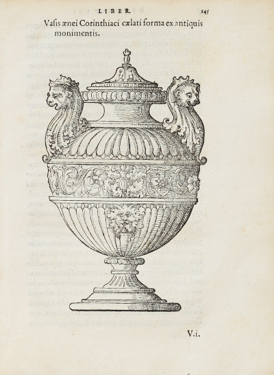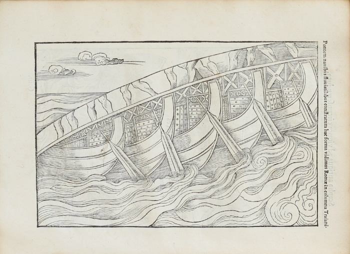 The volume is illustrated with numerous woodcuts, which were, according to Charles Estienne’s preface, based upon ancient monuments (particularly those surviving in Rome). Bernard notes that four of the woodcuts were signed with Robert Estienne’s device of the cross of Lorraine (that on p. 22 of De re navali, which is repeated on p. 152, and those on pp. 3, 38, and 55 of De re vestiaria), but that all of the remaining woodcuts, although not signed, were from the studio of Geofroy Tory. Following the completion of the first edition of this collection in 31 August 1536, Baïf sent a copy to his associate Erasmus, evidently unaware of the death of the great humanist on 12 July 1536; as van Gulik notes, the author ‘must have sent a copy of his book to Basel immediately after its publication. The copy was conscientiously added to Erasmus’ estate by his executor Bonifacius Amerbach’ (E. van Gulik, Erasmus and his Books (Toronto, 2018), ‘The Versandliste: An Annotated Catalogue’, no. 245). The work was then republished in this edition in 1549, two years after Baïf’s death.