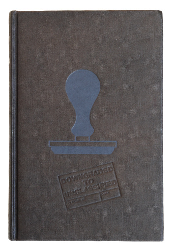 Octavo in 16s (189 x 125mm), pp. [8], 9-319, [1 (unnumbered final text l.)]. Original dark brown cloth by A.W. Bain and Co. Ltd., upper board with stamp design blocked in blue and ‘downgraded to unclassified’ stamp blocked in blind, spine lettered and with publisher’s device in gilt, black-and-white document-facsimile design endpapers, black-and-white dustwrapper designed by Raymond Hawkey repeating the ‘downgraded to unclassified’ stamp motif on the rear panel, with Jonathan Cape’s decorative clip of corners, not price-clipped. (Extremities lightly rubbed and bumped, dustwrapper lightly rubbed and creased at edges, spine slightly darkened, a few spots on verso.) A very good copy in the dustwrapper.